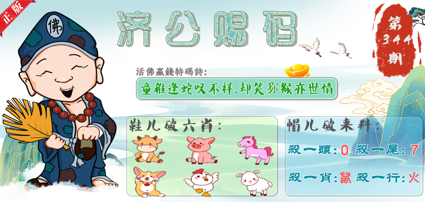 | 第341期: | 【兔羊蛇牛龙猴鼠猪】 | 开:鼠06准 |